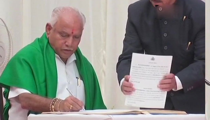 ఉదయం సరిగ్గా 9 గంటలకు యడ్యూరప్ప సీఎంగా ప్రమాణస్వీకారం చేశారు.