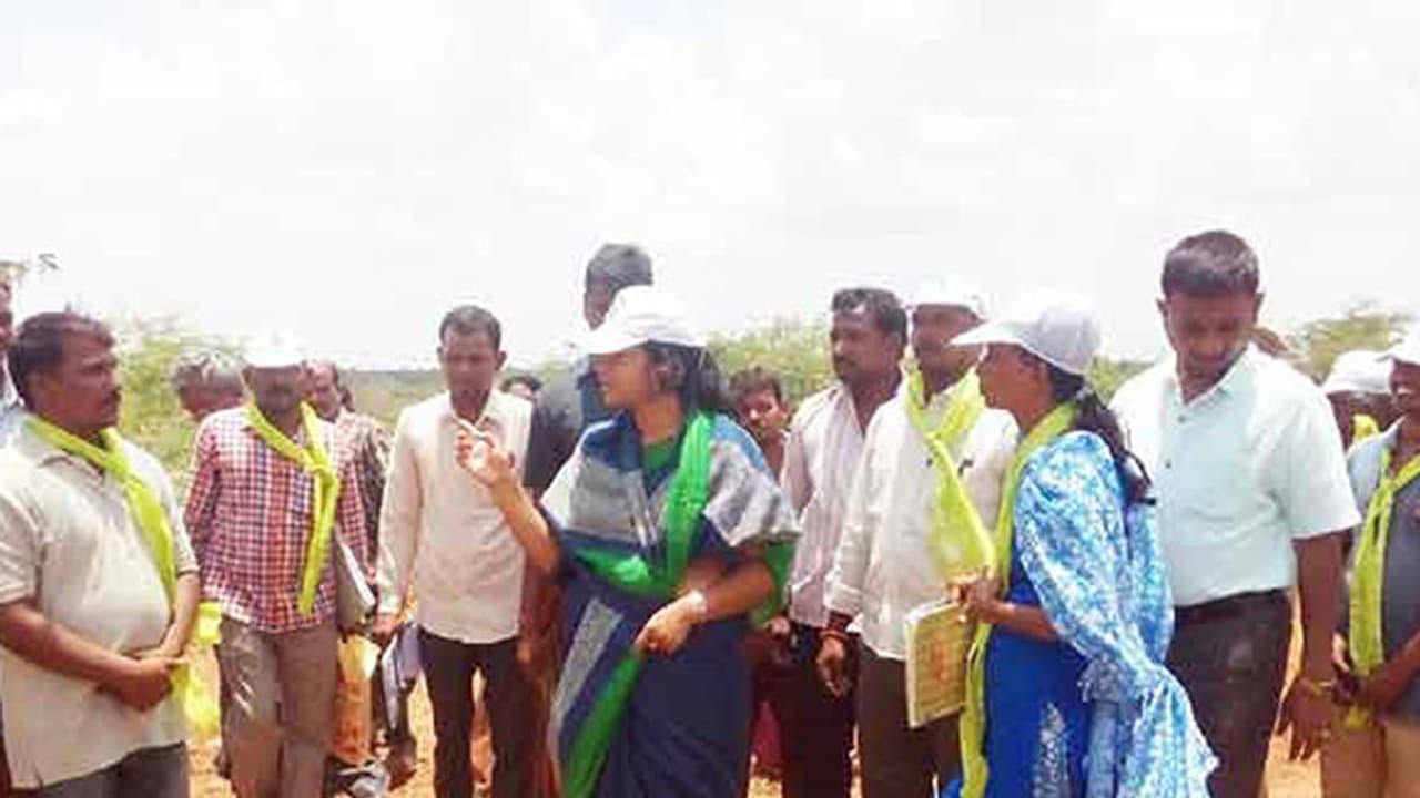 కలెక్టర్ మొక్కలను నాటేందుకు కేవలం ఒకే గుంత తీశారు. గ్రామానికి చేరుకున్న కలెక్టర్ కెనాల్ను, ప్రభుత్వ స్థలా న్ని పరిశీలించారు. అనంతరం పంచాయతీ కార్యదర్శి మహ్మద్ అలీ, ఫీల్డ్అసిస్టెంట్ రవికుమార్లను మొక్కలు పెంచేందుకు ఎస్టీమేషన్ ఎంత వేశారని ప్రశ్నించారు. 8,900మొక్కలనునాటేందుకు ఎస్టీమేషన్ వేశా మని వారు తెలిపారు. అయితే 300 గుంతలు తీశామని చెప్పగానే ఆమెకు కోపం వచ్చింది. గ్రామంలోని కెనాల్కు అటు ఇటు ప్రభుత్వ స్థలాలున్నాయి. వేలాది మొక్కలు నాటేందుకు వీలు ఉంది. అక్కడ మొక్కలు నాటకుండా ఎంచేస్తున్నారని ప్రశ్నించారు.