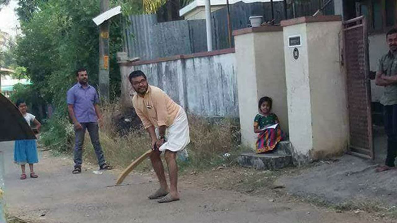 ఈ ఫోటోలో అడ్డపంచె కట్టుకుని క్రికెట్ ఆడుతున్న మనిషెవరై ఉంటారు. ఊర్లో పనీ పాట లేకుండా తిరిగే వాడే ఇలా వీధి పిల్లల్తో క్రికెట్ ఆడగలడు. మరి ఈ పెద్ద మనిషెవరై ఉంటారు. గుర్తుపట్టండి. సినిమా యాక్టరా.. ఎంపియా... లేక ఎవరబ్బా?సినిమా యాక్టరయితే కాదు. మరెెవరు? జాగ్రత్తగా చూడండి.