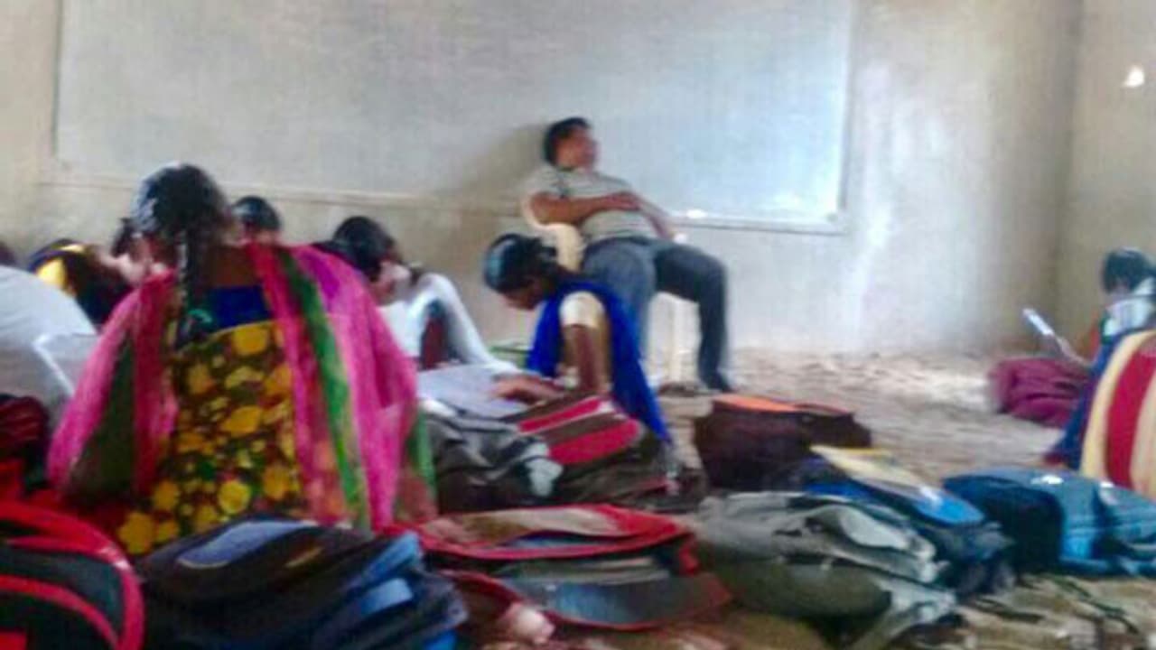 తరగతి గదిలో నిద్రించిన ఉపాధ్యాయుడు ఫోటో తీసి వాట్సాప్ లో పంపిన గ్రామస్థుడు