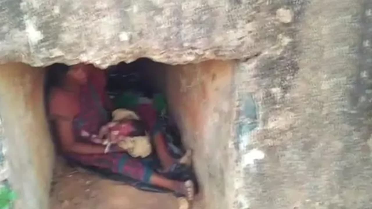 ప్రమీలా తిరయా అనే ఆ మహిళ కాంక్రీట్ కల్వర్ట్ లో వెనక్కి ఒరిగి కూర్చున్న ఫొటోలు మీడియాలో వచ్చాయి. ఆమెకు ఆశా కింద సహాయం కూడా అందలేదని అంటున్నారు.