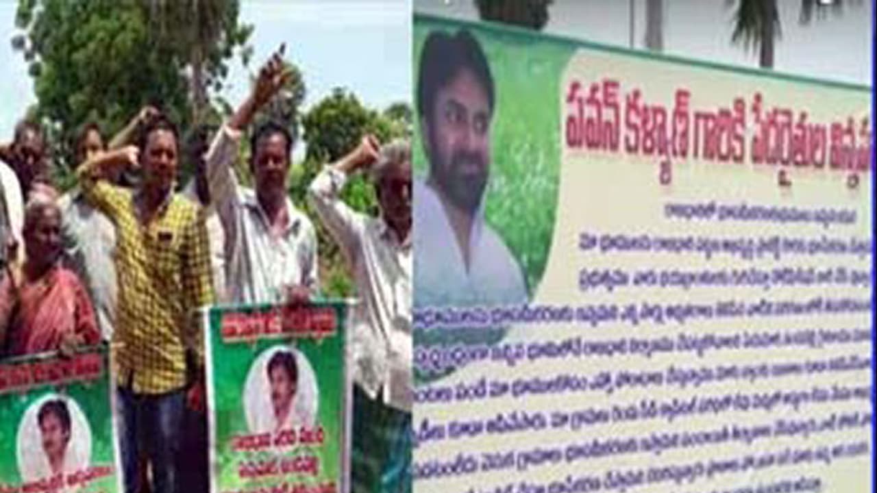 పవన్ కోసం ప్లెక్సీలను ఎర్పాటు చేసిన ఫ్యాన్స్ ప్లెక్సీలను చించేసిన దుండగులు ధర్నాకు దిగిన ఫ్యాన్స్