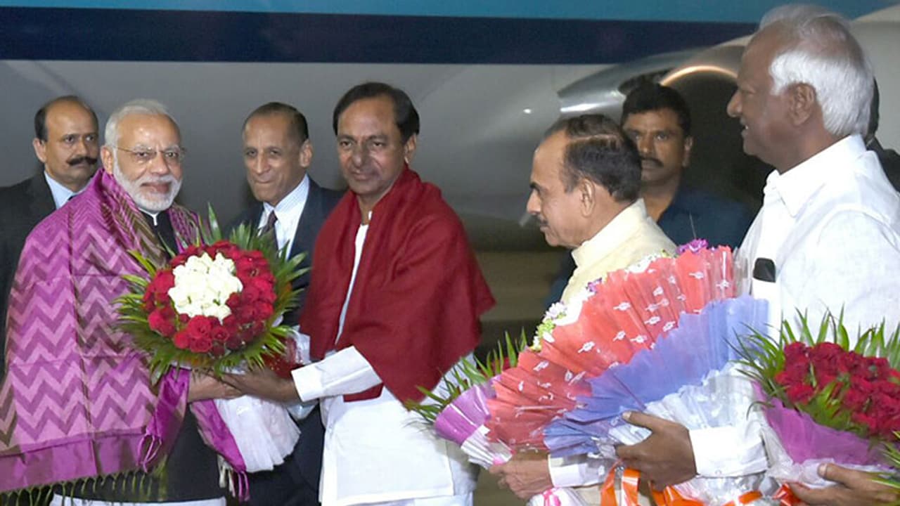 చండీగఢ్ నుండి ప్రత్యేక విమానంలో ప్రధానమంత్రి నరేంద్రమోడి శుక్రవారం సాయంత్రం శంషాబాద్ ఎయిర్ పోర్టు చేరుకున్నారు. ప్రధానికి గవర్నర్ ఇఎస్ఎల్ నరసింహన్, తెలంగాణ ముఖ్యమంత్రి కెసిఆర్, శాసనమండలి చేర్మెన్ స్వామి గౌడ్ ,అసెంబ్లీ స్పీకర్ మధుసుదన చారి, రాష్ట్ర మంత్రులు నాయని నర్సింహ రెడ్డి,కెటిఆర్,మహేందర్ రెడ్డి, జోగు రామన్న,ఇంధ్రకరణ్ రెడ్డి, తుమ్మల నాగేశ్వరరావు,జూపల్లి కృష్ణారావు, లక్ష్మరెడ్డి,పోచారం శ్రీనివాస్ రెడ్డి, కడియం శ్రీహరి పాల్గొన్నారు.