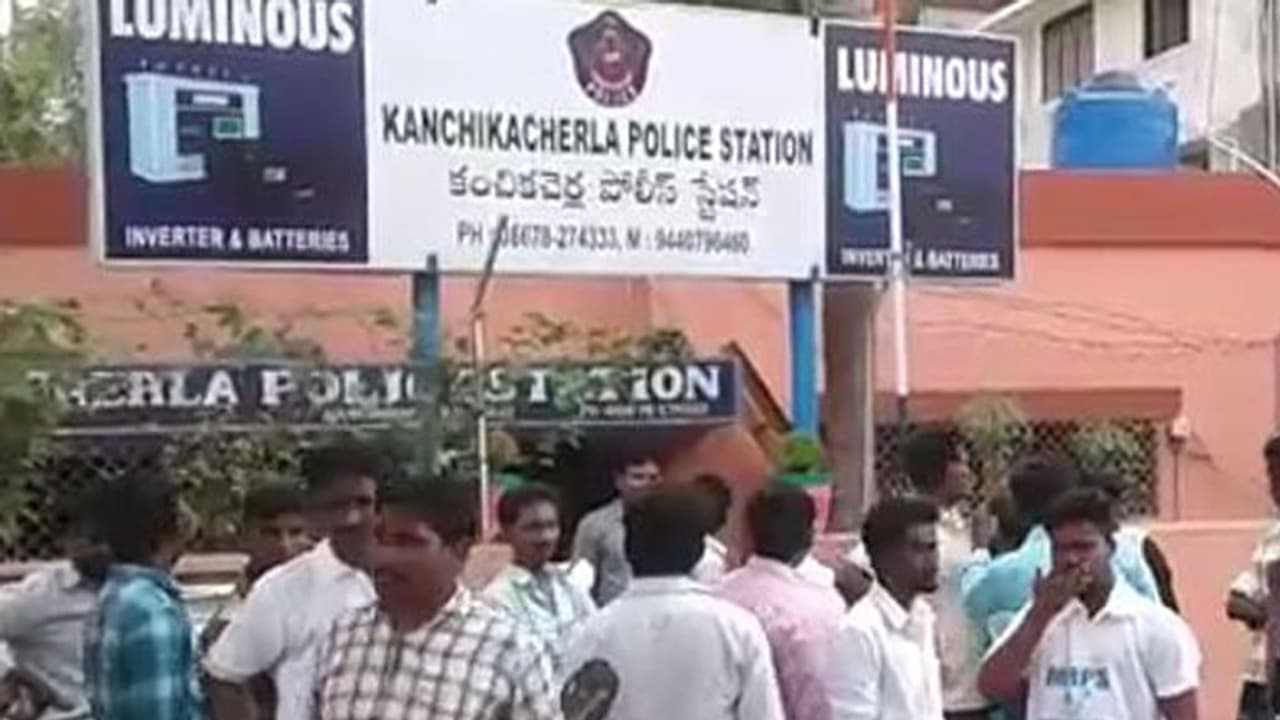 కంచికచర్ల మండల పరిధిలోని పలుగ్రామాలకు చెందిం40 మంది ఎమ్మార్పీఎస్ కార్యకర్తలను కురుక్షేత మహాసభకు వెళ్తున్నారన్నా సమాచారంతో ముందస్తుగా నిర్బంధించి పోలిస్ స్టేషన్కు తరలించారు స్టేషను బయట మాట తప్పిన సీఎం డౌన్ డౌన్ అంటూ నినాదాలు చేస్తున్నవారిని పోలీసులు స్టేషను లోనికి లాక్కొని వెళ్లారు.
