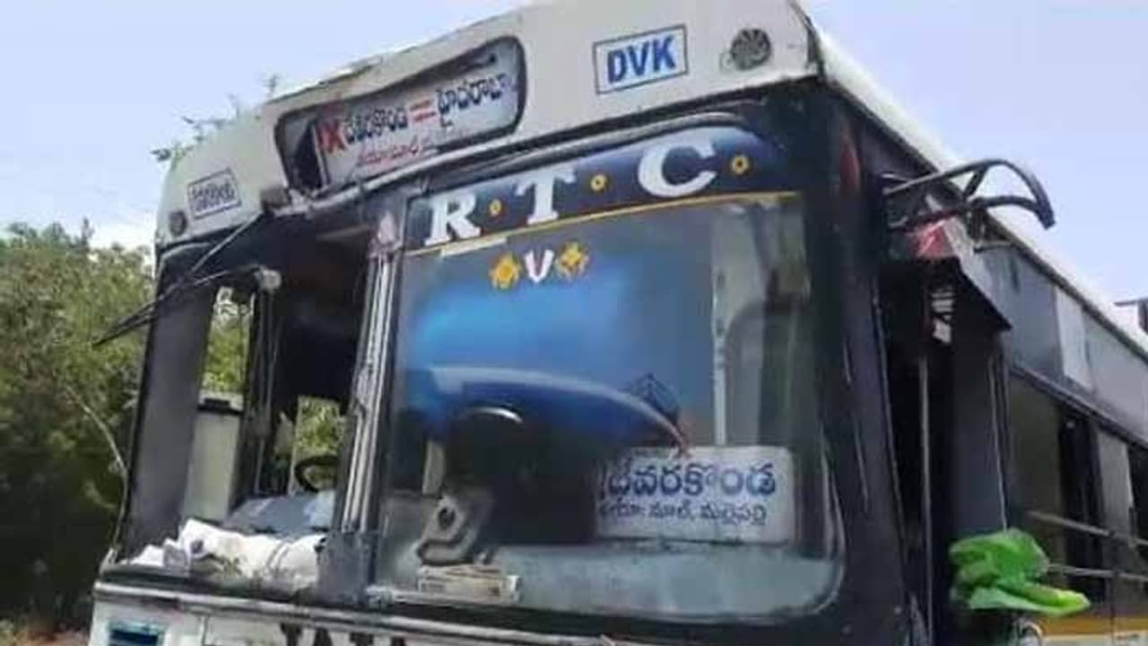 రంగారెడ్డి జిల్లా యాచారం సమీపంలో సాగర్ హైవే పై ఒక బస్సు మరో బస్సును ఢీకొట్టింది.