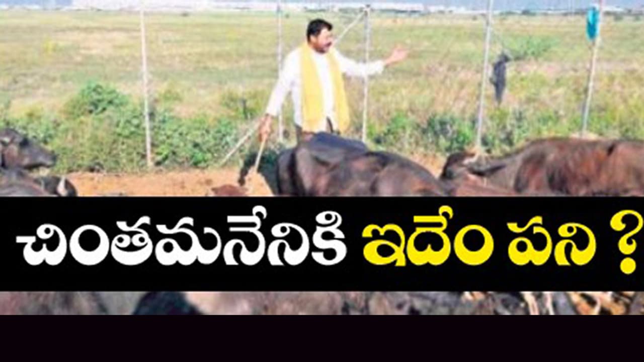 బర్రెలు కాచుకుంటున్న ఎమ్మెల్యే చింతమనేని అసెంబ్లీ సమావేశాల నిమత్తం అమరావతి వచ్చిన చింతమనేని బర్రెలను కూడా అమరావతికి తెప్పించుకున్న ఎమ్మెల్యే