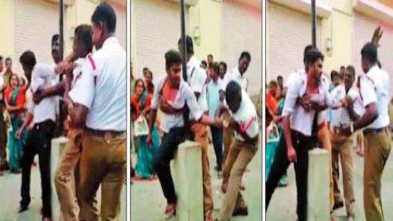 ఈ ఘటనకు సంబంధించి పూర్తి వివరాలు ఇలా ఉన్నాయి...చెన్నై మాంబళం పోలీస్స్టేషన్ పరిధిలోని పోతీస్ వస్త్ర దుకాణం సమీపం ట్రాఫిక్ ఎస్ఐ సురేష్, స్పెషల్ ఎస్ఐ జయరామన్సోమవారం సాయంత్రం ట్రాఫిక్ నియంత్రిస్తున్నారు. ఆ సమయంలో హెల్మెట్ లేకుండా బైక్పై ఇద్దరు మహిళలతో యువకుడు ప్రయాణించాడు. ఎస్ఐ సురేష్ యువకుడిని అడ్డుకుని ప్రశ్నించగా తన తల్లి, చెల్లెలితో అత్యవసర పనిపై వెళుతున్నట్లు తెలిపాడు. హెల్మెట్ఎందుకు ధరించలేదని ప్రశ్నించగా యువకుడు వెటకా రంగా బదులిచ్చినట్లు సమాచారం.