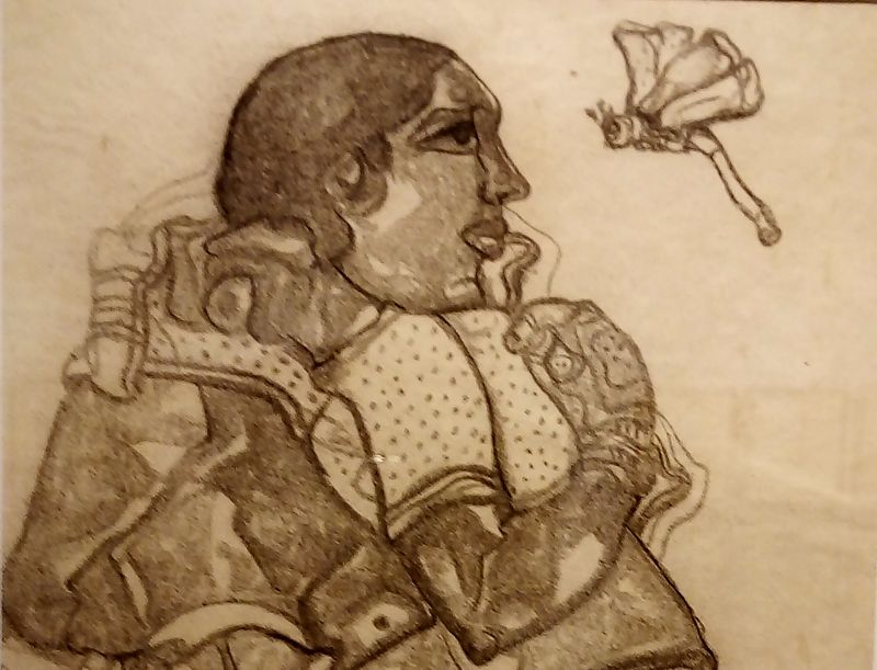 వైకుంఠం గారిచిత్రాల్లో స్త్రీల భుజాలపై వాలిన రామ చిలకతానదైన ప్రతీక. ఐతే, అంతకుముందు చేతులో కోడి పుంజుతో ఉన్న మహిళ చిత్రం ఇక్కడుంది. అలాగే, ఒక దువ్వెన తో ఊసులడుతున్న మగువా ప్రదర్శనలోఉన్నది. ఇవి అయన ముందరి చిత్రాలు. అటు తర్వాతే రామ చిలక ప్రధానంగావన్నె తేలినట్లు గోచరిస్తున్నది. ఐతే, ఈ పరిణామం ఒక్క చిలుకలోనే కాదు,వారి చిత్రకళా ప్రయాణంలో ఇలాంటిఇతర అనేక బొమ్మల వికాసాన్ని అధ్యయనం చేసి లోతుగా రాయవలసి కూడా ఉన్నది.