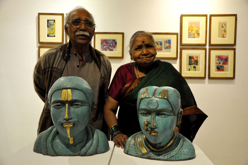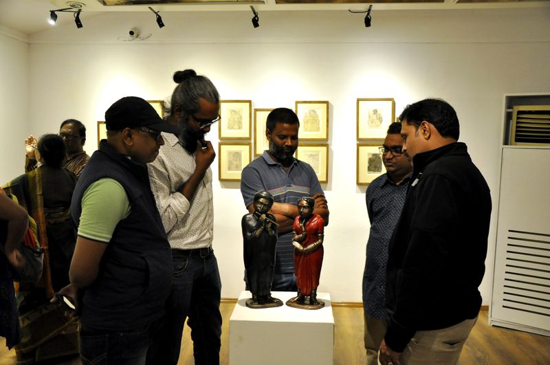 కాగా,కళాకృతిలోవారి ఇత్తడి శిల్పాలు మరో చూడ ముచ్చట.వైకుంఠంగారి రేఖాలావణ్యాన్ని, నిండైనఅతడి బొమ్మలరూప శీలతను,సహజమూ సామాన్యమూ ఐన వర్ణాలతోనే విశిష్టతను రంగరించే తీరు మనకు తెలుసు. అలంటి బొమ్మలు ఇంతదాకాకన్వాసుకే పరిమితమైనవి చూశాం. ఐతే, ఇక్కడరెండు జతలదంపతుల బొమ్మలుప్రాణం పోసుకునిమనముందుసజీవంగా నిలుచున్నట్టు కానరావడం విశేషం.
