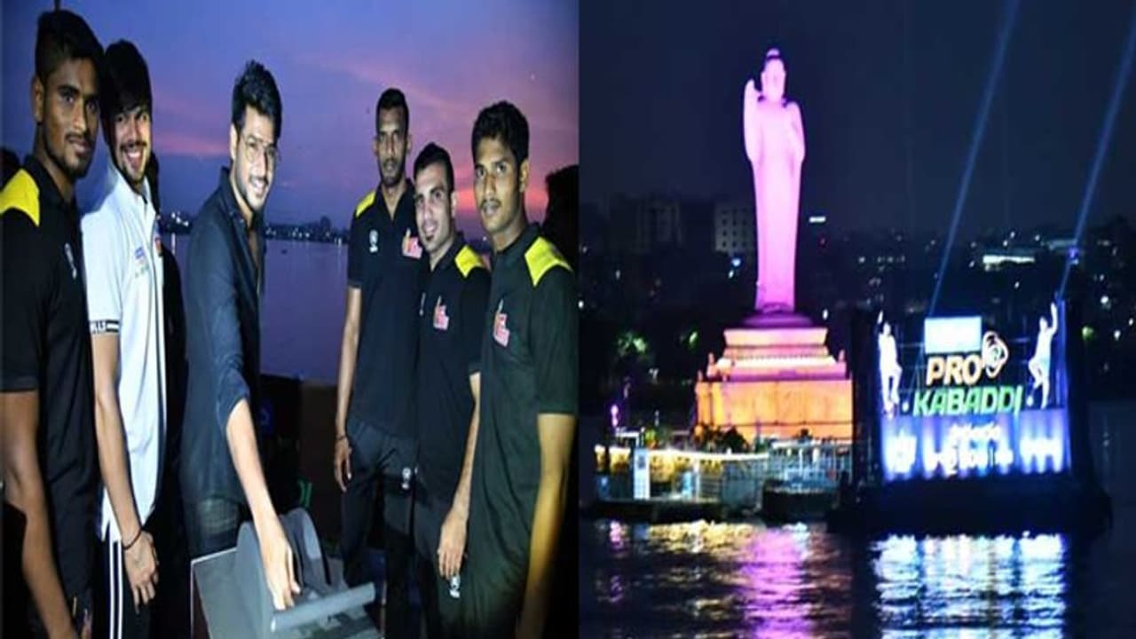 హైదరాబాద్ గచ్చిబౌలి ఇండోర్ స్టేడియంలో ప్రో కబడ్డి సీజన్ 7 రేపు(శనవారం) ప్రారంభం కానుంది. ఈ సందర్భంగా తెలుగు టైటాన్స్ ఆటగాళ్లు హుస్సెన్ సాగర్ ఒడ్డునగల ట్యాంక్ బండ్ పై సందడి చేశారు.