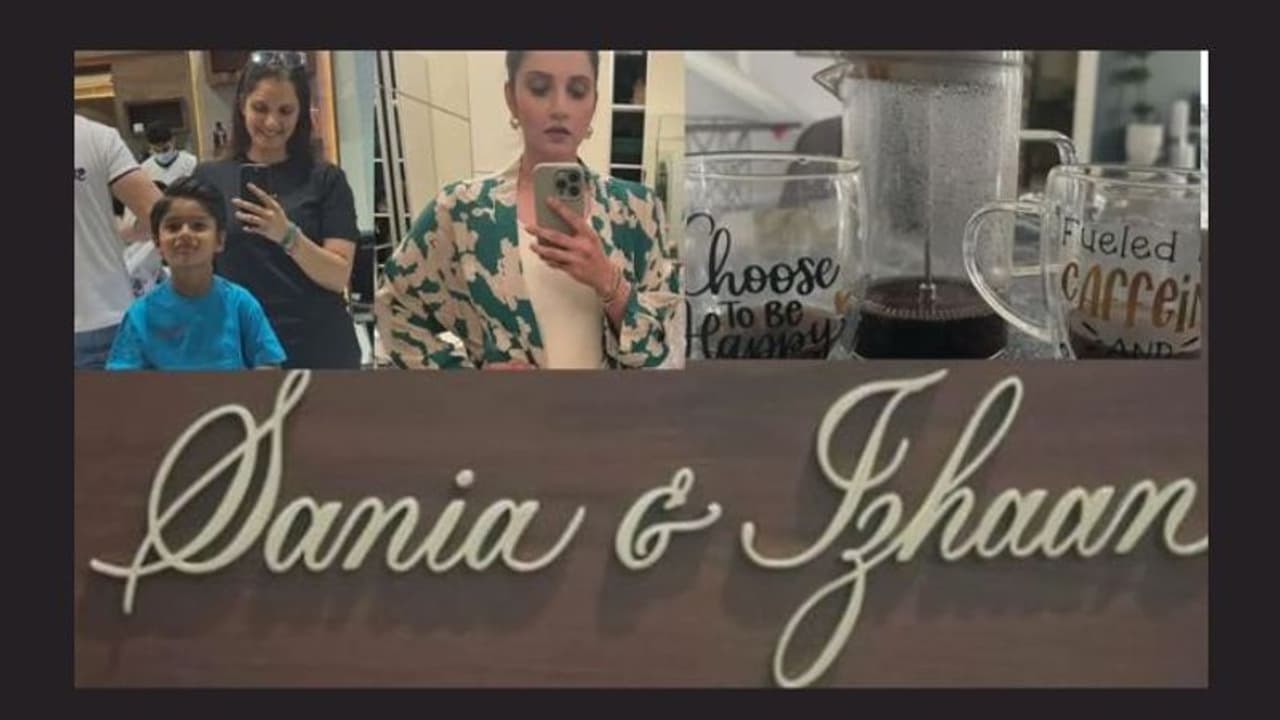 సానియా షేర్ చేసిన ఫోటోలలో ఆమె తన స్నేహితులతో తిరుగుతూ.. కాఫీ తాగుతూ, సెల్ఫీలు తీసుకోవడాన్ని మనం చూడవచ్చు. కాఫీ కప్పు పై 'సంతోషంగా ఉండడాన్ని ఎంచుకోండి' అని కోట్ రాసి ఉంది. అయితే మన దృష్టిని ఆకర్షించిన చిత్రం సానియా ఇంటి నేమ్ప్లేట్. ఆ కొత్త నేమ్ప్లేట్ పై ఆమె, ఆమె కొడుకు ఇజాన్ పేరు మాత్రమే ఉన్నాయి.