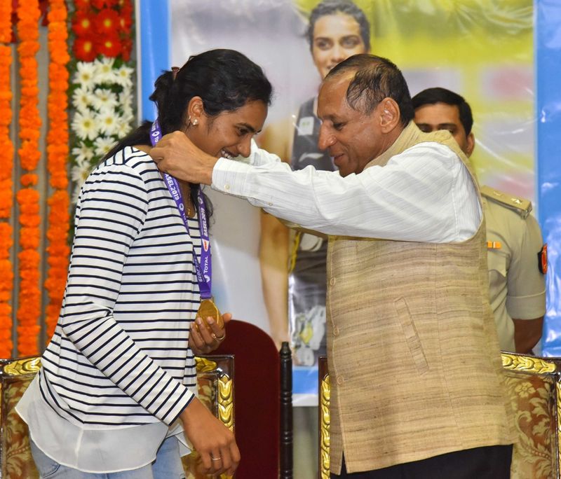 తెలంగాణ గవర్నర్ ఈఎస్ఎల్ నరసింహన్ వరల్డ్ బ్యాడ్మింటన్ ఛాపింయన్ పివి సింధుపై ప్రశసంల వర్షం కురిపించారు. రాజ్ భవన్ లో జరిగిన సింధు సన్మాన సభలో గవర్నర్ ప్రసంగించారు.