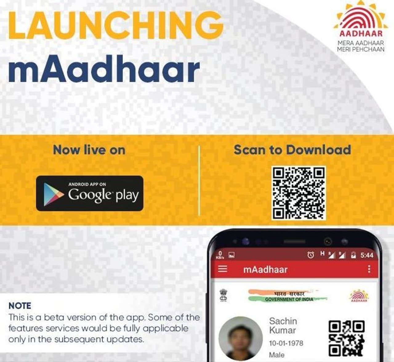 యూనిక్ ఐడెంటిఫికేషన్ అథారిటీ ఆఫ్ ఇండియా (యుఐడిఎఐ) తన ఎంఆధార్ యాప్ కొత్త వెర్షన్ను ఐఓఎస్ మరియు ఆండ్రాయిడ్ కోసం విడుదల చేసింది. పాత వెర్షన్ యాప్ వెంటనే తొలగించాలని కొత్తదాన్ని డౌన్లోడ్ చేసుకోవాలని UIDAI ప్రతి ఒక్కరికి కోరుతుంది, ఎందుకంటే ఇంతకుముందు ఉన్న యాప్స్ ఎప్పుడైనా పనిచేయడం ఆగిపోతాయి లేదా థర్డ్ పార్టీ నుండి పనిచేసే యాప్స్ ఇక పనిచేయవు.