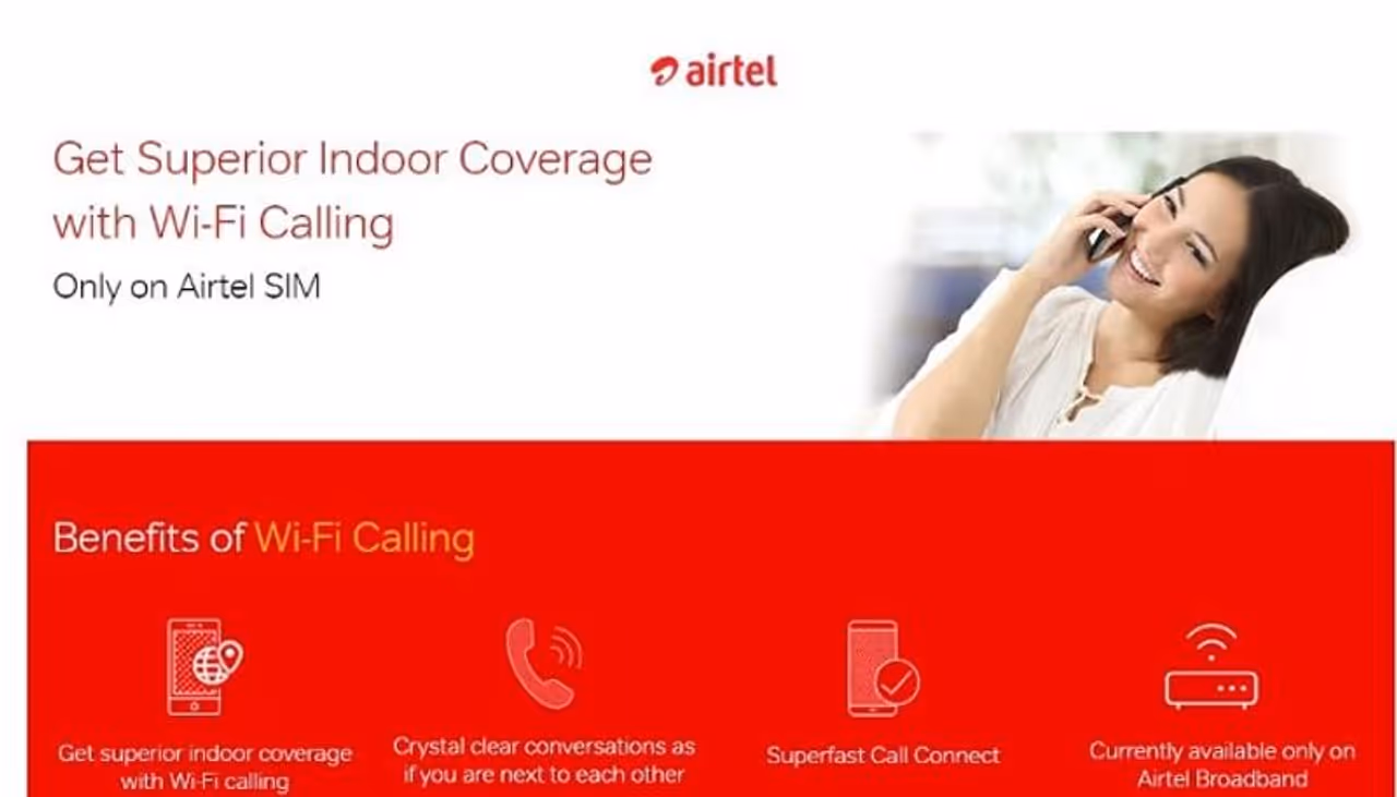 కాగా గత ఏడాది డిసెంబర్ నెలలో ఎయిర్టెల్ తన ‘వాయిస్ ఓవర్ వైఫై (వీఓవైఫై)’ సేవలను తొలిసారిగా ప్రారంభించింది. ఈ సేవలు తెలంగాణ, ఆంధ్ర ప్రదేశ్, తమిళనాడు రాష్ట్రాలతోపాటు ఢిల్లీ, ముంబై, కోల్కతా నగరాల్లో అందుబాటులో ఉన్నాయి.