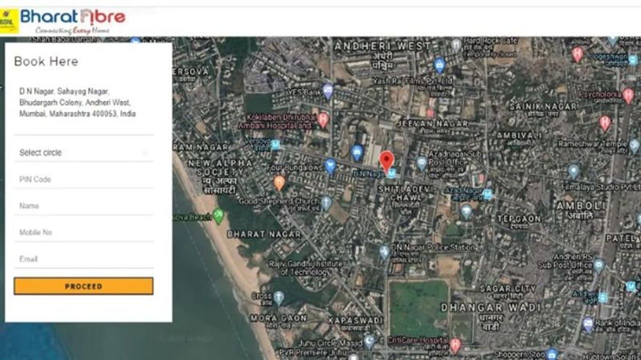 బిఎస్ఎన్ఎల్ పోర్టల్ లోఒక మ్యాప్ ఉంటుంది. మీ లోకేషన్ కోసం మీ చిరునామాను టైప్ చేస్తే సరిపోతుంది. పోర్టల్లో నావిగేట్ చెయ్యడానికి సులభమైన ఇంటర్ఫేస్ ఉంది. చిరునామాను టైప్ చేయడానికి బదులుగా, మీరు పాయింటర్ను మీ ఖచ్చితమైన లొకేషన్ కోసం డ్రాగ్ చేయవచ్చు , దాని తరువాత చిరునామా కన్ఫర్మేషన్ కొరకు డైలాగ్ బాక్స్ కనిపిస్తుంది.