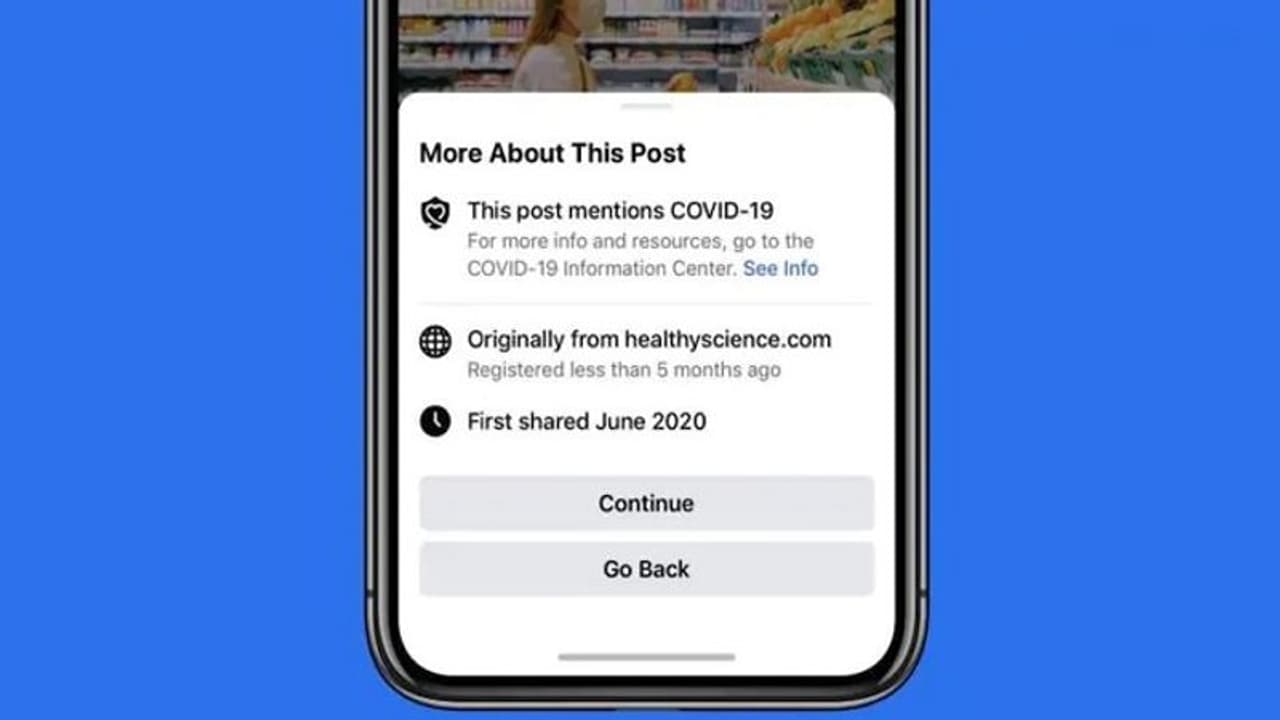 సోషల్ మీడియా దిగ్గజం ఫేస్బుక్ ప్రపంచవ్యాప్తంగా ఉన్న ఫేస్బుక్ యూసర్ల కోసం ఒక కొత్త నోటిఫికేషన్ రూపొందిస్తోంది, వినియోగదారులు సోషల్ మీడియాలో షేర్ చేసే కోవిడ్-19 సంబంధిత కంటెంట్ పై మరింత సమాచారం ఇస్తుంది.
