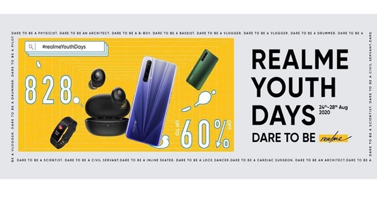 స్మార్ట్ ఫోన్ తయార్ సంస్థ రియల్మీ యూత్ డేస్ సెల్ వచ్చే వారం ఆగస్టు 24 నుంచి ప్రారంభించనునట్లు ప్రకటించింది. ఈ సెల్ ఐదు రోజుల పాటు ఉంటుంది, ఆగస్టు 28తో ముగుస్తుంది. స్మార్ట్ఫోన్లు, ఇయర్ఫోన్లు, వెరబుల్ వాటిపై 60 శాతం వరకు డిస్కౌంట్ ఉంటుందని కంపెనీ తెలిపింది.
