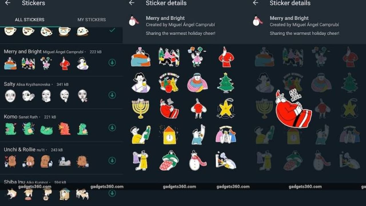 క్రిస్మస్ సందర్భంగా వాట్సాప్ గ్రూపులలో, చాట్లలో క్రిస్మస్ శుభాకాంక్షలు తెలిపేందుకు ఇన్స్టంట్-మెసేజింగ్ ప్లాట్ఫాం వాట్సాప్ మెర్రీ క్రిస్మస్ స్టిక్కర్లను తీసుకొచ్చింది. ఇప్పుడు ఈ వాట్సాప్ స్టిక్కర్లు వినియోగదారుల ఇష్టాలకు, కోరికలకు అనుగుణంగా ఈ స్టీక్కర్స్ రూపొందించారు. క్రిస్మస్ ముందు కూడా వాట్సాప్ యానిమేటెడ్ స్టిక్కర్లను ప్రవేశపెట్టింది,