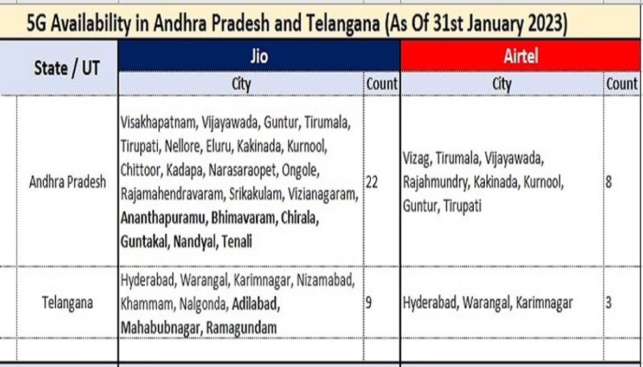 ఈ విస్తరణతో ఏపీలోని 22 నగరాలు, తెలంగాణలోని 9 నగరాలు ఇప్పుడు కస్టమర్లకు JioTrue5G సేవలను అందిస్తున్నాయి.