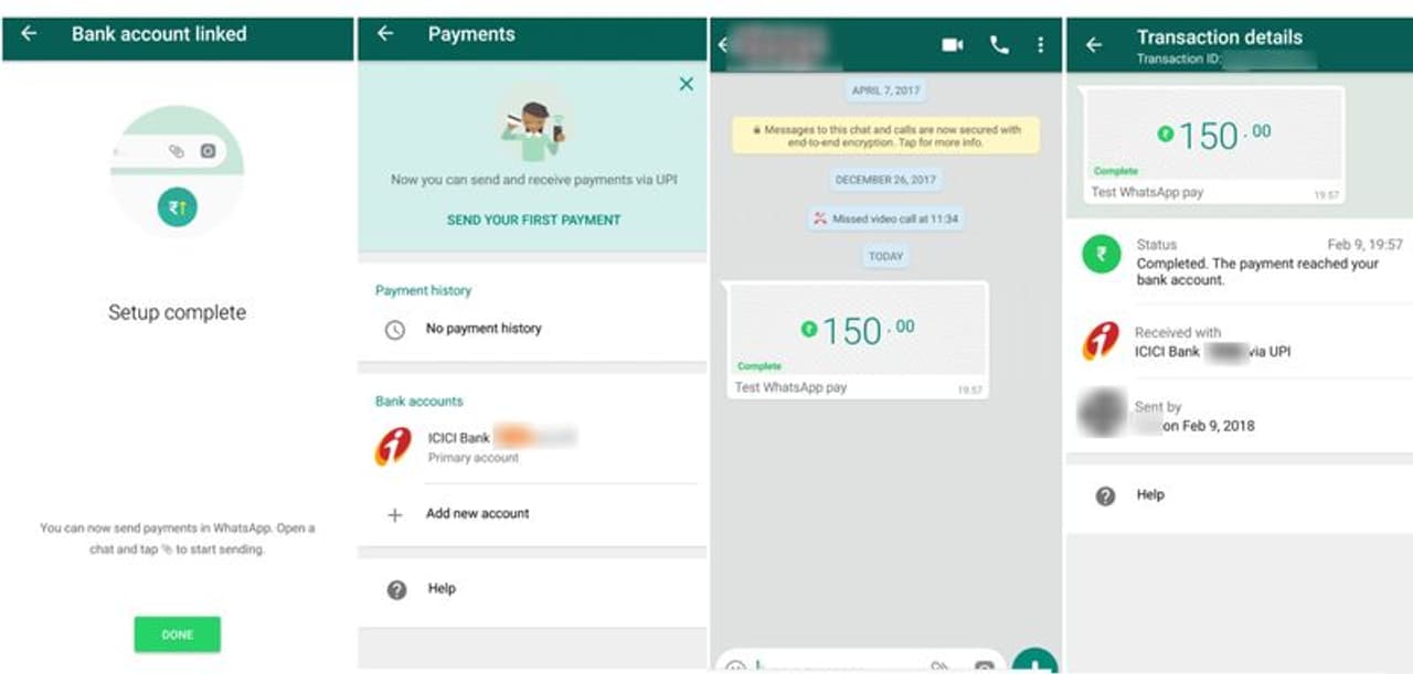 గతేడాది ఫిబ్రవరి: ఐసీఐసీఐ బ్యాంకుతో కలిసి ప్రయోగాత్మకంగా సర్వీసులు ప్రారంభం అయ్యాయి. ప్రయోగాత్మక దశలోనే 10 లక్షల యూజర్లకు సేవలు అందిస్తున్న వాట్సాప్ పే మొత్తం 40 కోట్ల యూజర్ల సేవలు విస్తరించేందుకు అనుమతుల కోసం యత్నాలు చేస్తున్నది.