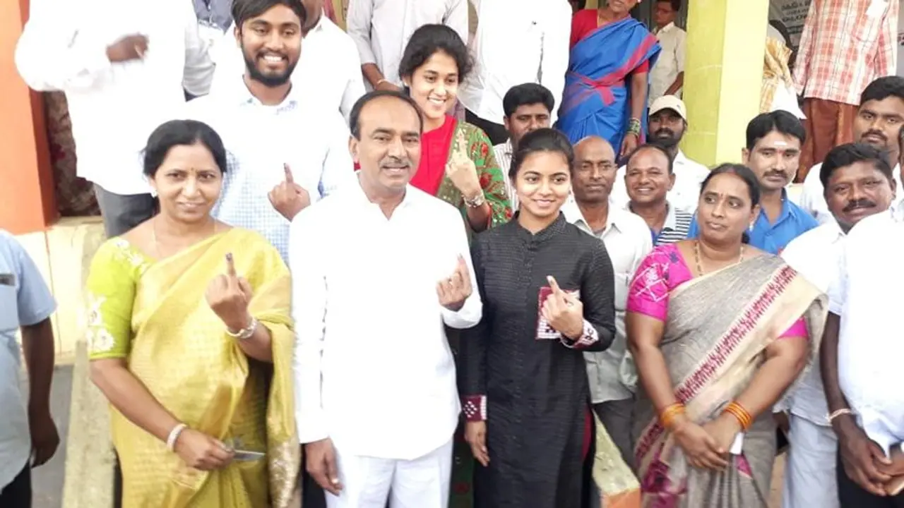 తెలంగాణలో లోక్ సభ ఎన్నికలు ప్రశాంత వాతావరణంలో జరుగుతున్నాయి. పోలింగ్ లో సాధారణ ప్రజలతో పాటు రాజకీయ, సీని ప్రముఖులు కూడా ఉత్సాహంగా పాలుపంచుకుంటున్నారు. ఈ క్రమంలో రాష్ట్ర వైద్యారోగ్య శాఖ మంత్రి ఈటల రాజేందర్ కుటుంబ సభ్యులతో కలిసి స్వగ్రామం కమలాపూర్ లో ఓటు హక్కును వినియోగించుకున్నారు.