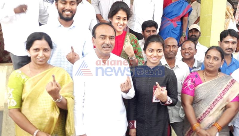 మంత్రి ఈటల రాజేందర్ కుటుంబంతో కలిసి ఓటు హక్కును వినియోగించుకున్నారు.