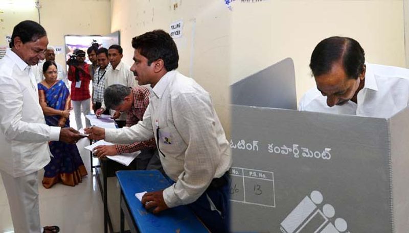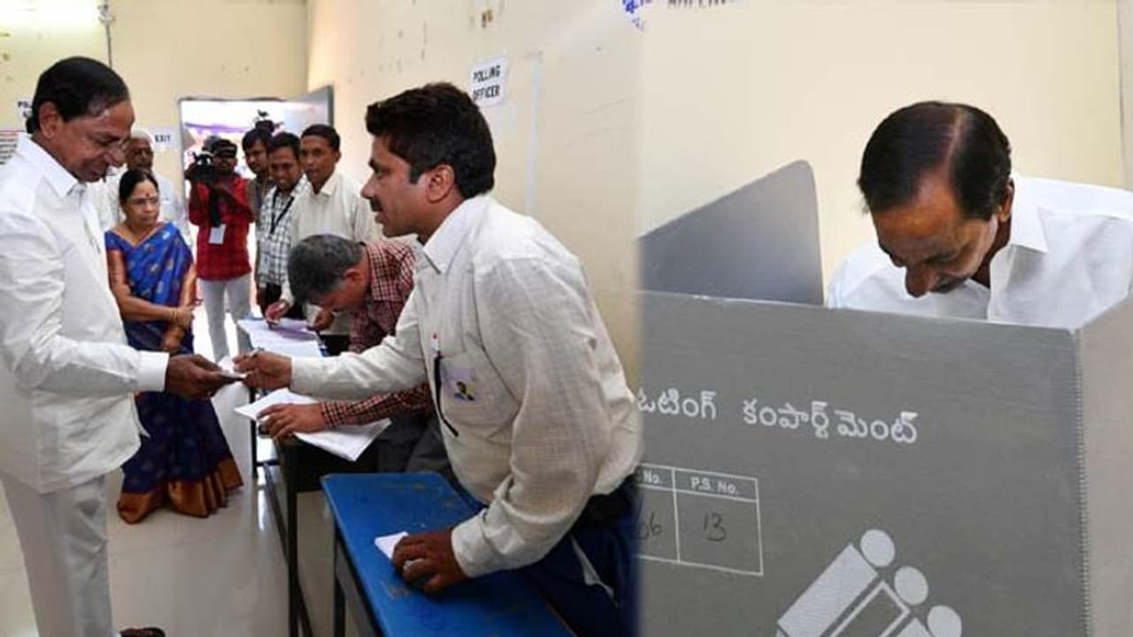 తెలంగాణ ముఖ్యమంత్రి కేసీఆర్ ఓటు హక్కును వినియోగించుకున్నారు. స్వగ్రామంలో చింతమడకలోని పోలింగ్ బూత్లో ఆయన భార్య శోభతో కలిసి ఓటు వేశారు. సీఎంకు ఎమ్మెల్యే హరీశ్ రావు, అధికారులు స్వాగతం పలికారు.