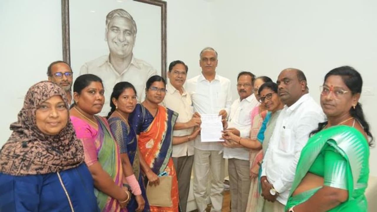 అంగన్వాడీ టీచర్లు, హెల్పర్ల జాయింట్ యాక్షన్ కమిటీ ఆధ్వర్యంలో సిఐటియు, ఐఐటియు యూనియన్ల నాయకులు హైదరాబాద్ లోని మంత్రి హరీష్ నివాసానికి వెళ్లి కలిసారు. ఈ సందర్భంగానే పీఆర్సీలో అంగన్వాడీలను చేర్చాలని సీఎం కేసీఆర్ నిర్ణయం తీసుకున్నట్లు వారికి హరీష్ తెలిపారు. ఈ నిర్ణయంతో ప్రభుత్వ ఉద్యోగులతో పాటే అంగన్వాడీల జీతభత్యాలు కూడా పెరుగుతాయని మంత్రి తెలిపారు. అలాగే మిగతా సమస్యలను కూడా పరిష్కరించడానికి కూడా ప్రభుత్వం సిద్దంగా వుందన్నారు.