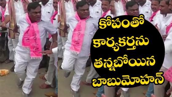 కోపంతో కార్యకర్తను తన్నబోయిన బాబు మోహన్