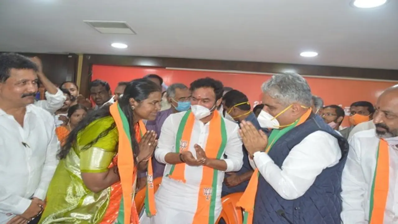 హైదరాబాద్: గ్రేటర్ హైదరాబాద్ నగర పాలక సంస్థ (జిహెచ్ఎంసీ) ఎన్నికల వేళ కాంగ్రెసు పార్టీకి షాక్ తగిలింది. హైదరాబాదులో ఆ పార్టీ కీలక నేత, మాజీ మేయర్ బండ కార్తిక రెడ్డి బుధవారం బిజెపిలో చేరారు కేంద్ర హోం శాఖ సహాయ మంత్రి కిషన్ రెడ్డి, జాతీయ ప్రధాన ప్రధాన కార్యదర్శి భూపేందర్ యాదవ్ సమక్షంలో ఆమె బిజెపిలో చేరారు