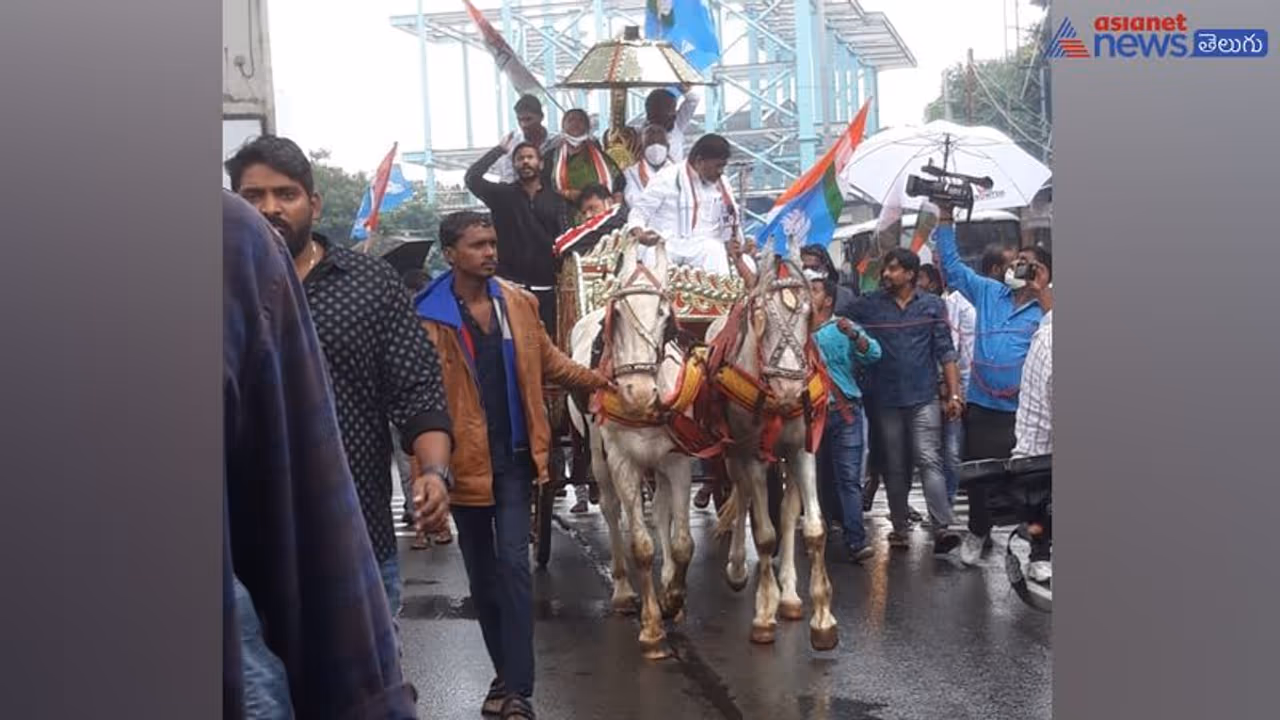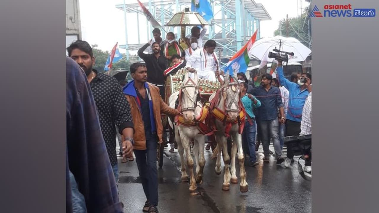 భారత్ బంద్ (bharat Bandh)లో భాగంగా తెల ంగాణ కాంగ్రెసు నేతలు గుర్రపు బగ్గీపై అసెంబ్లీకి చేరుకున్నారు. అదే బగ్గీపై లోనికి వెళ్లడానికి ప్రయత్నించిన వారిని పోలీసులు అడ్డుకుని అరెస్టు చేశారు.