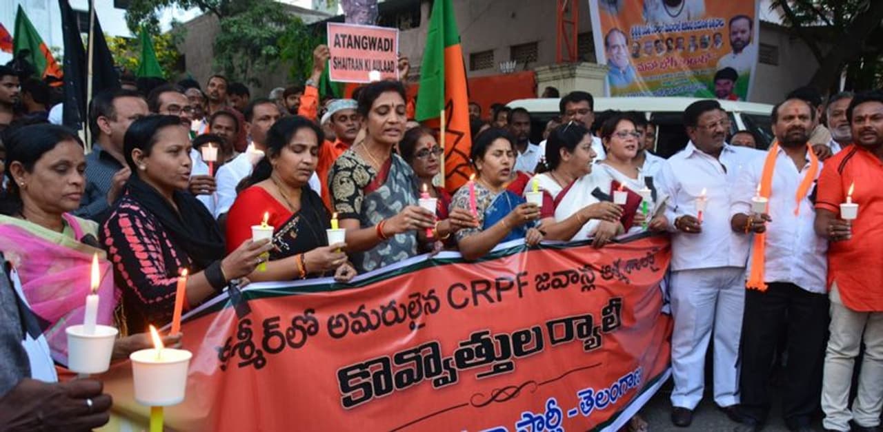 భారత సైనికుల మృతికి సంతాపంగా తెలంగాణ బిజెపి కొవ్వొత్తుల ర్యాలీ