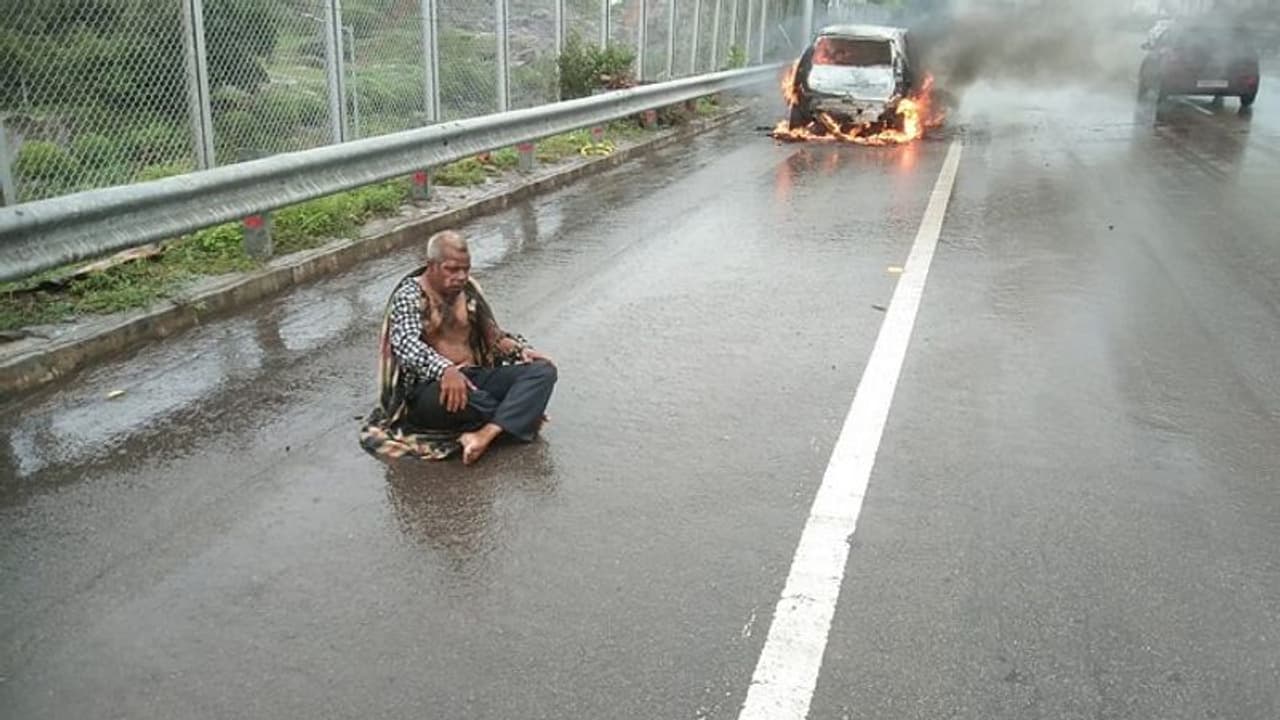 కారు డ్రైవర్ మంటల్లో చిక్కుకు పోవడంతో అదే మార్గం నుండి వెళ్తున్న లారీ, ఆటో డ్రైవర్ గమనించి మంటల్లో చిక్కుకున్న డ్రైవర్ ను వెలికి తీసి 108 వాహనంలో సమీపంలోని హాస్పిటల్ కు తరలించారు.