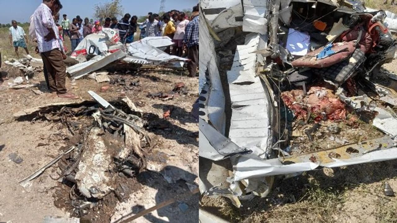 హెలికాప్టర్ కుప్పకూలిన ఘటనకు సంబంధించి స్థానికులు అధికారులు సమాచారం అందించారు. దీంతో స్థానిక రెవెన్యూ యంత్రాంగం, పోలీసులు, వైద్య సిబ్బంది ఘటన స్థలానికి చేరుకున్నారు. హెలికాప్టర్ కూలిపోయే సమయంలో దట్టమైన మంటలు చూశామని స్థానికులు చెబుతున్నారు. ప్రమాదం జరిగిన సమయంలో ట్రైనీ హెలికాప్టర్ వేగం చాలా ఎక్కువగా ఉన్నట్టుగా వారు స్థానికులు తెలిపారు. అయితే హెలికాప్టర్ కుప్పకూలడానికి కారణాలను అధికారులు పరిశీలన తర్వాతే వెల్లడికానుంది. ఇక, కుప్పకూలిన హెలికాప్టర్ను ఫ్లైటెక్ ఏవియేషన్ అకాడమీకి చెందినదిగా గుర్తించారు. "