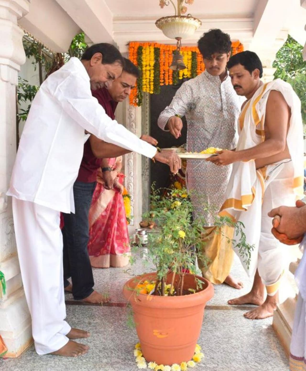 విజయదశమి (vijayadashami) సందర్భంగా తెలంగాణ ముఖ్యమంత్రి (telangana cm) కె. చంద్రశేఖర్ రావు (kcr) ప్రగతి భవన్లో (pragathi Bhavan) జరిగిన దసరా (dussehra) వేడుకల్లో పాల్గొన్నారు. ప్రగతి భవన్ ఆవరణలోని నల్లపోచమ్మ (nalla pochamma) అమ్మవారి దేవాలయంలో కుటుంబ సమేతంగా అమ్మవారికి పూజలు నిర్వహించారు.
