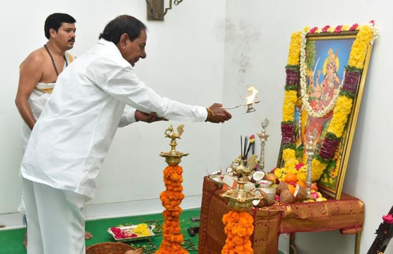 విజయదశమి (vijayadashami) సందర్భంగా తెలంగాణ ముఖ్యమంత్రి (telangana cm) కె. చంద్రశేఖర్ రావు (kcr) ప్రగతి భవన్లో (pragathi Bhavan) జరిగిన దసరా (dussehra) వేడుకల్లో పాల్గొన్నారు. ప్రగతి భవన్ ఆవరణలోని నల్లపోచమ్మ (nalla pochamma) అమ్మవారి దేవాలయంలో కుటుంబ సమేతంగా అమ్మవారికి పూజలు నిర్వహించారు. అర్చకుల నుంచి ఆశీర్వదం తీసుకున్నారు. అనంతరం సంప్రదాయ బద్ధంగా వాహన పూజ, అయుధ (ayudha pooja) పూజ ఘనంగా నిర్వహించారు. ఆ తర్వాత దసరా సందర్భంగా కేసీఆర్ జమ్మి చెట్టుకు ప్రత్యేక పూజ నిర్వహించారు.