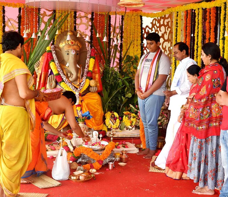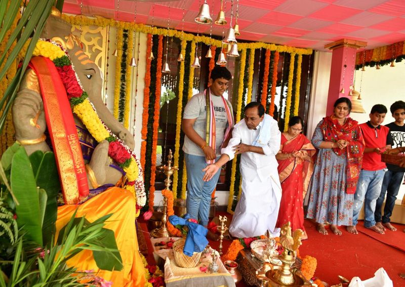 వినాయక చవితి వేడుకలు తెలంగాణ ముఖ్యమంత్రి అధికారిక నివాసం ప్రగతి భవన్లో ఘనంగా జరిగాయి. మట్టి గణపతి విగ్రహాన్ని ప్రతిష్టించి పూజలు నిర్వహించారు.
