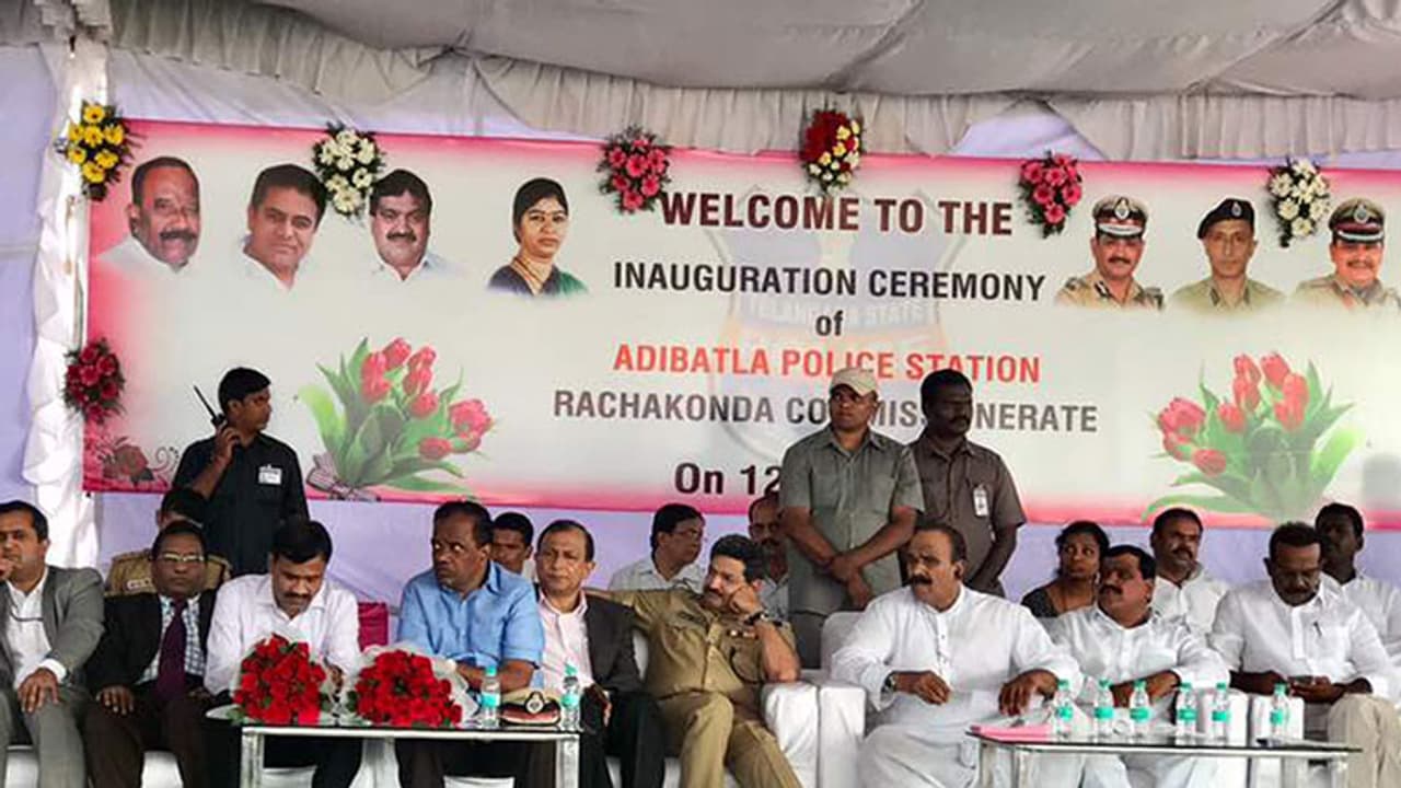 రంగారెడ్డి జిల్లాలోని ఆదిబట్లలో రెండున్నర కోట్ల రుపాయలతో అత్యాధునిక సౌకర్యాలతో పోలీస్ స్టేషన్ ను నిర్మించారు. ఆ భవనాన్ని సోమవారం ప్రారంభించారు. రాష్ట్రంలోనే అత్యంత ఆదునిక సౌకర్యాలు కలిగిన పోలీస్ స్టేషన్ ప్రారంభోత్సవం కాబట్టి రాష్ట్ర హోంమంత్రి నాయిని నర్సింహ్మారెడ్డి, డిజిపి అనురాగ్ శర్మ , జిల్లా మంత్రి పట్నం మహేందర్ రెడ్డి, జడ్పీ ఛైర్ పర్సన్ సునీతారెడ్డి, భువనగిరి ఎంపి బూర నర్సయ్య గౌడ్, రాచకొండ సిపి మహేష్ భగవత్ ఇంకా పెద్ద పెద్ద లీడర్లు, పోలీసు ఆఫీసర్లు మీటింగ్ లో పాల్గొన్నరు.