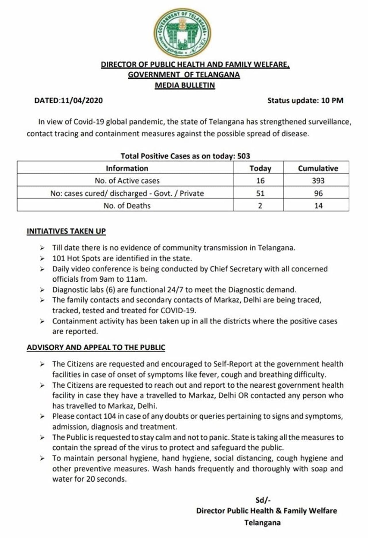 ఇలా కరోనా వైరస్ కేసులు పెరుగుతుండడం, వైరస్ విస్తరిస్తుండడంతో ప్రభుత్వం హుటాహుటిన అప్రమత్తమై, తెలంగాణలో 100 మేర హాట్ స్పాట్లను అదనంగా చేర్చింది. శనివారం నాటికి 101 హాట్ స్పాట్లను ప్రభుత్వం గుర్తించగా, ఇప్పుడు ఆ సంఖ్య 202కు పెంచింది తెలంగాణ ప్రభుత్వం.