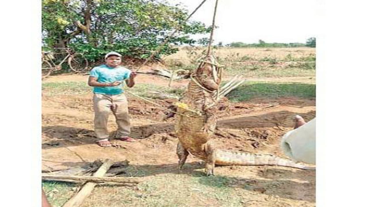 వరంగల్ రూరల్ జిల్లాలోని నల్లబెల్లి మండలం, రాంపూర్ శివారులో ఉన్న చెరువులో భారీ మొసలి ఒకటి జనాలను కలవరపాటుకు గురి చేసింది. మిషన్ కాకతీయ పనుల్లో భాగంగా రాంపూర్ చెరువులో మరమ్మత్తు పనులు చేస్తున్నారు. ఈ క్రమంలో చెరువులో ఉన్న బురదలో మొసలి కూరుకుపోయి ఉన్నట్లు బుల్డోజర్ డ్రైవర్ గుర్తించారు. డోజర్ సాయంతో కట్టను తవ్వగా మొసలి బయటకు వచ్చింది. దీంతో వెంటనే అటవీ సిబ్బందికి సమాచారం ఇచ్చారు. అటవీ సిబ్బంది వచ్చి మొసలిని సురక్షితంగా బయటకు తీశారు. అనంతరం ఆ మొసలిని పాకాల చెరువలో వదిలేశామని జిల్లా అటవీ శాఖాధికారి పురుషోత్తం మీడియాకు తెలిపారు.