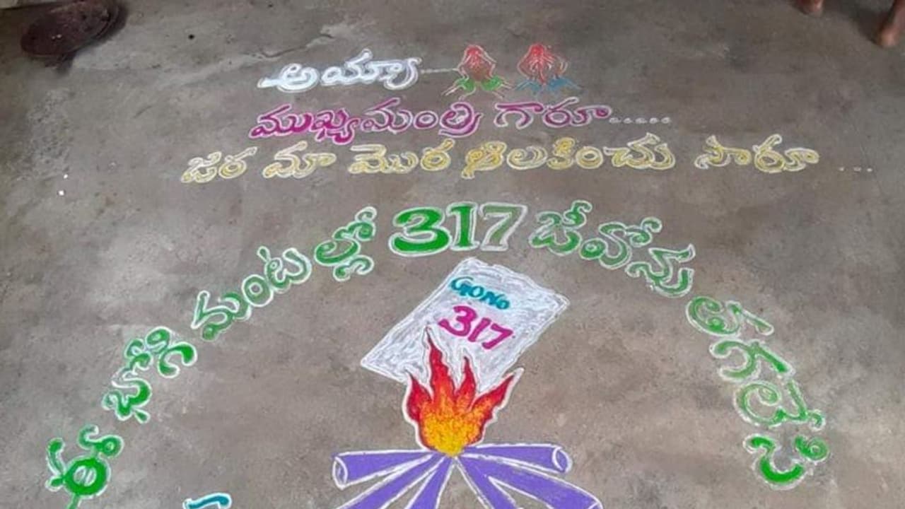 317 జీవో పై ఉద్యోగుల్లో అసంతృప్తి చల్లారడం లేదు. ప్రతీ రోజు ఏదో ఒక రకంగా నిరసలు తెలుపుతూనే ఉన్నారు. అయితే ఈ సంక్రాంతి పండగ సందర్భాన్ని ఉపయోగించుకొని కూడా తెలంగాణ సర్కార్ తీరును ముగ్గుల ద్వారా ఉద్యోగులు నిరసిస్తున్నారు.