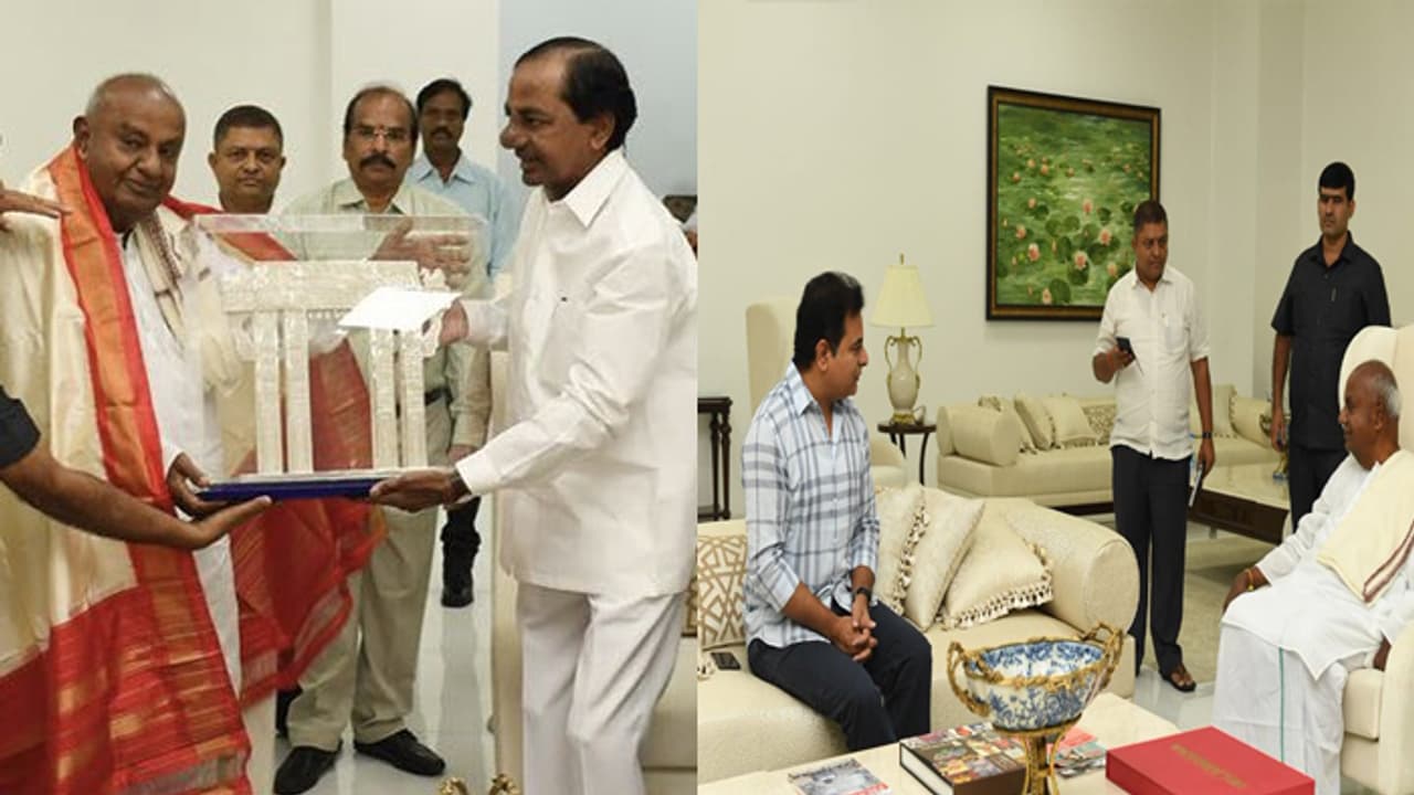 మాజీ ప్రధాని.. జేడీఎస్ అధినేత దేవేగౌడ హైదరాబాద్లో తెలంగాణ ముఖ్యమంత్రి కేసీఆర్తో భేటీ అయ్యారు. నిన్న సాయంత్రం భాగ్యనగరానికి వచ్చిన ఆయన ఇవాళ మధ్యాహ్నం ప్రగతిభవన్లో కేసీఆర్, మంత్రి కేటీఆర్తో సమావేశమయ్యారు. ప్రధానంగా ఫెడరల్ ఫ్రంట్ ఏర్పాటు, జాతీయ రాజకీయాలపై వీరిద్దరూ చర్చించినట్లుగా తెలుస్తుంది. ఈ సందర్భంగా దేవేగౌడను కేసీఆర్ సత్కరించారు. కర్ణాటక ఎన్నికలు ముగియడం.. కాంగ్రెస్తో కలిసి జేడీఎస్ ప్రభుత్వాన్ని ఏర్పాటు చేసిన తర్వాత కేసీఆర్ ఫెడరల్ ఫ్రంట్ విషయంలో కాస్త మౌనంగానే ఉన్నారు. తాజా భేటీతో కూటమి దిశగా మరో ముందడుగు పడే అవకాశం ఉందని విశ్లేషకులు అంటున్నారు.