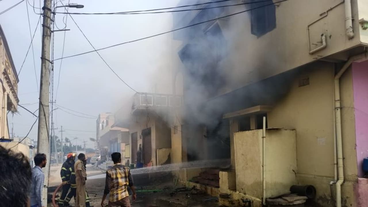 గ్యాస్ సిలిండర్ పేలడంతో ఈ ప్రమాదం చోటు చేసుకొందని స్థానికులు చెబుతున్నారు. ఈ విషయం తెలిసిన వెంటనే అగ్నిమాపక బృందం సంఘటన స్థలానికి చేరుకొని మంటలను ఆర్పుతున్నారు.