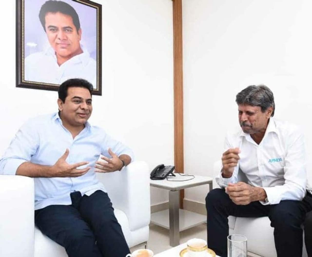 హైదరాబాద్: తెలంగాణ ఐటీ, పరిశ్రమల శాఖ మంత్రి కేటీఆర్ ను మాజీ క్రికెటర్ కపిల్ దేవ్ మర్యాదపూర్వకంగా భేటీ అయ్యారు. సోమవారం ఉదయం హైదరాబాద్ లోని జీహెచ్ఎంసీ కార్యాలయంలో మంత్రి కేటీఆర్ను కలిశారు.