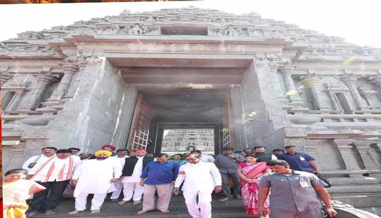 యాదాద్రి ఆలయానికి చేరుకున్న తెలంగాణ, ఢిల్లీ సీఎం , పంజాబ్ సీఎంలు కేసీఆర్, అరవింద్ కేజ్రీవాల్, భగవంత్ సింగ్ మాన్ లు, సమాజ్ వాదీ పార్టీ చీఫ్ అఖిలేష్ యాదవ్ ల కు ఆలయ అధికారులు పూర్ణకుంభంతో స్వాగతం పలికారు. ఆలయ విశిష్టతను సీఎం కేసీఆర్ ముఖ్యమంత్రులకు వివరించారు. ఆలయంలో ప్రత్యేక పూజలు నిర్వహించిన తర్వాత స్వామివారి తీర్ధప్రసాదాలను సీఎంలు స్వీకరించారు.