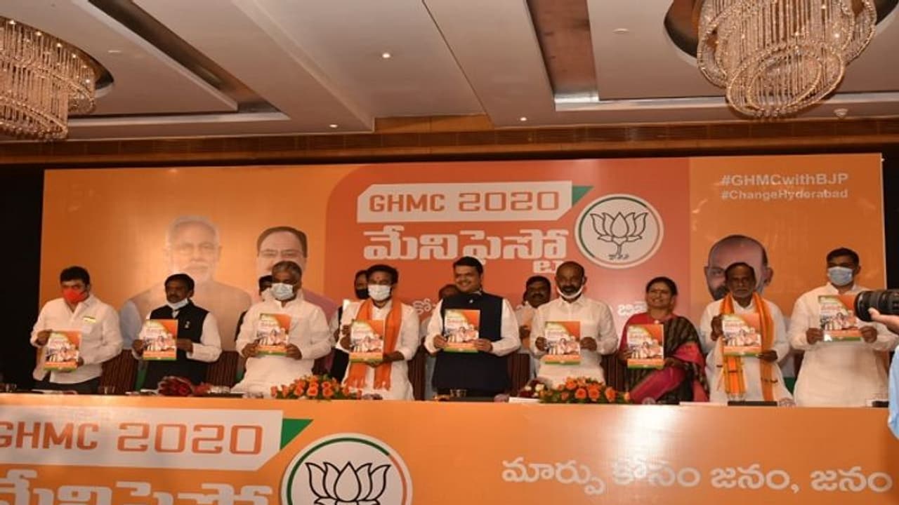 జిహెచ్ఎంసీ ఎన్నికల్లో బిెజెపి మానిఫెస్టోను మహారాష్ట్ర మాజీ ముఖ్యమంత్రి దేవేంద్ర ఫడ్నవీస్ విడుదల చేశారు. జిహెచ్ఎంసీ ఎన్నికల్లో గెలిస్తే ఎల్ఆర్ఎస్ రద్దు చేస్తామని ఫడ్నవీస్ చెప్పారు.