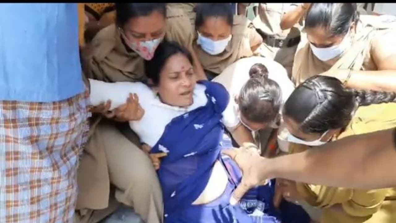 హుజురాబాద్ నియోజకవర్గం ఇల్లంతకుంటలో ఉపాధి భరోసా పాదయాత్రకు సిద్దమైన ఇందిరా శోభన్ ను పోలీసులు బలవంతంగా అరెస్ట్ చేశారు.