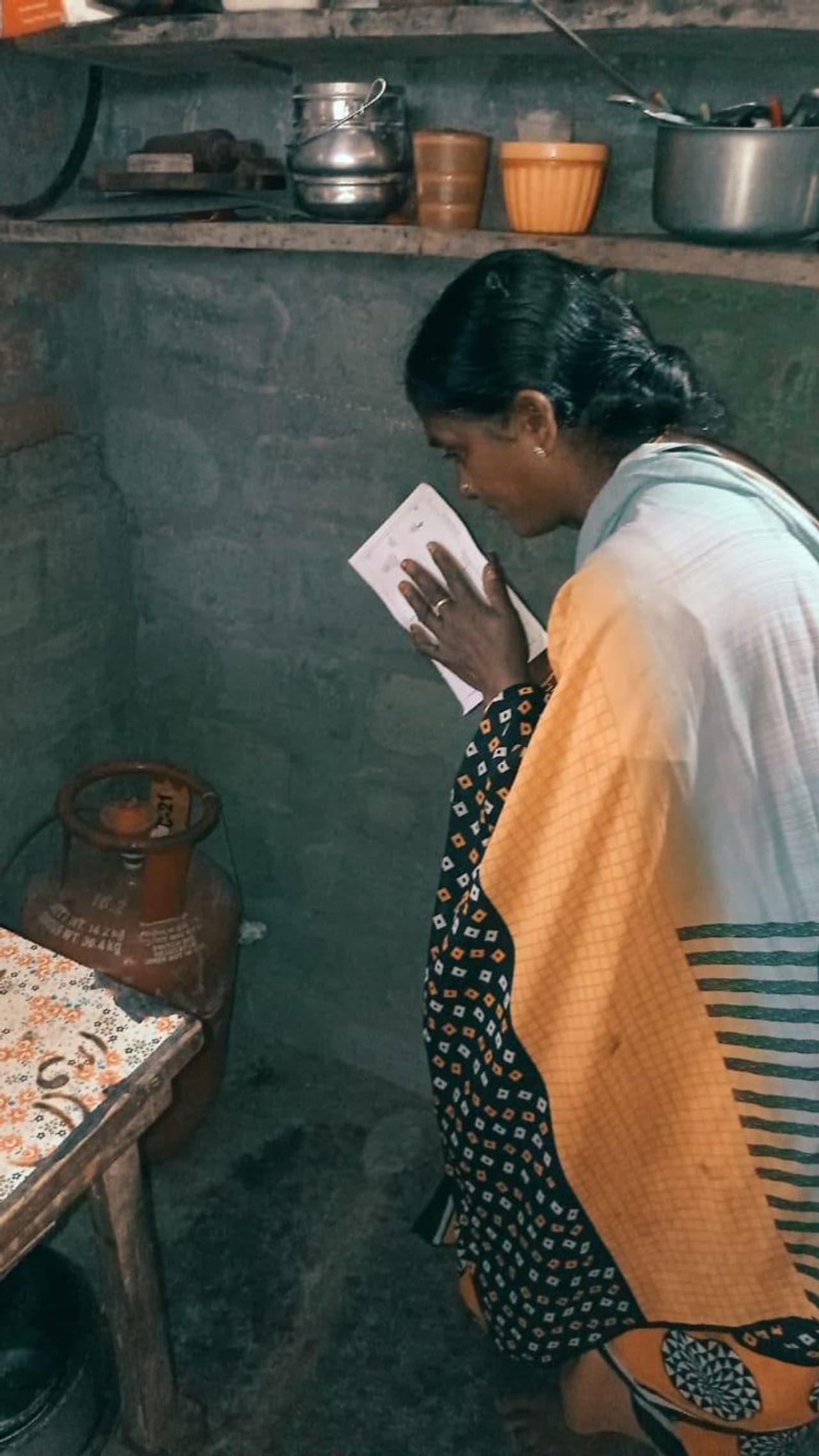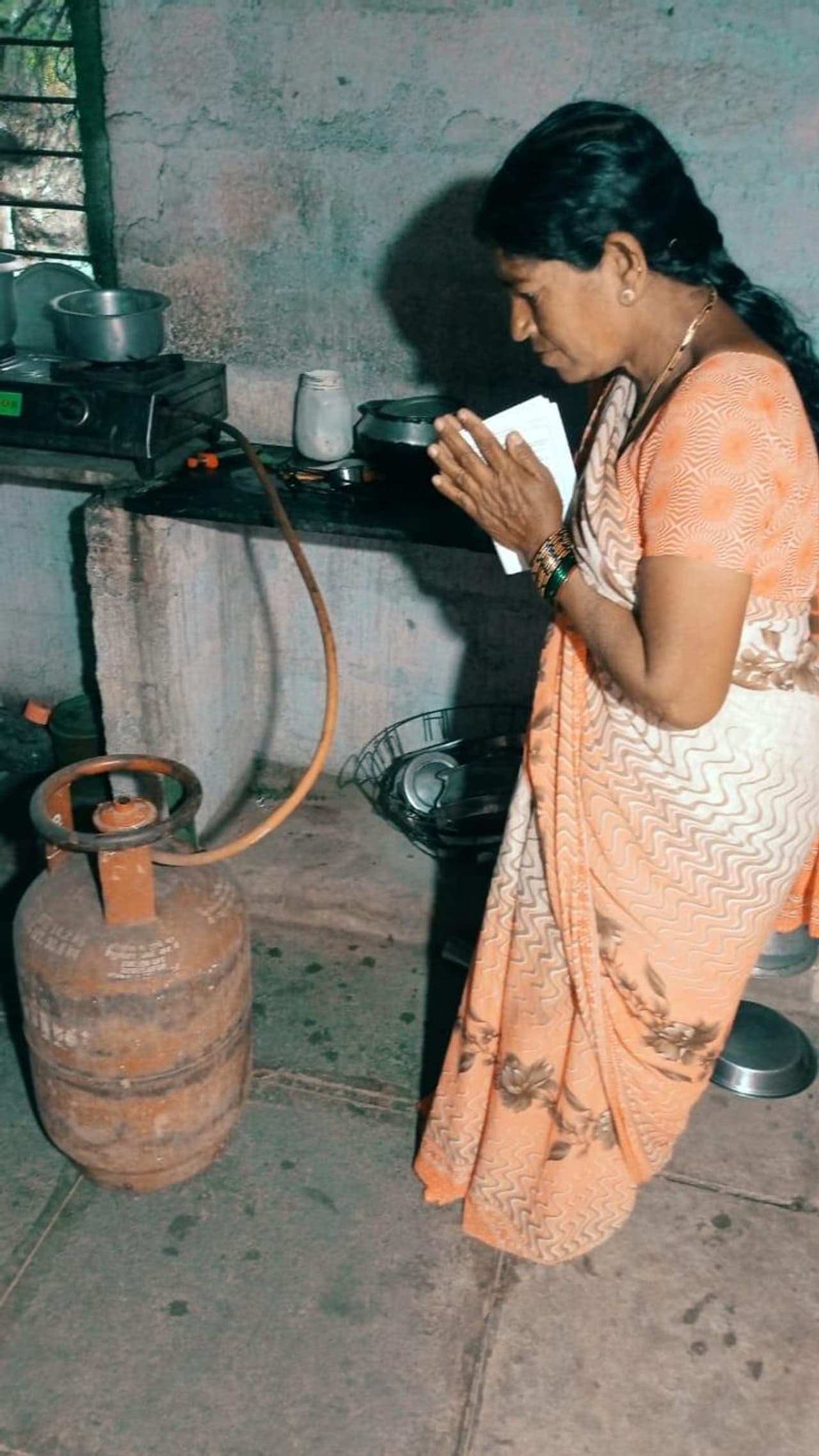 ఓటేసేందుకు వెళ్లేముందు సిలిండర్ కు దండం పెడుతున్న గెల్లు శ్రీనివాస్