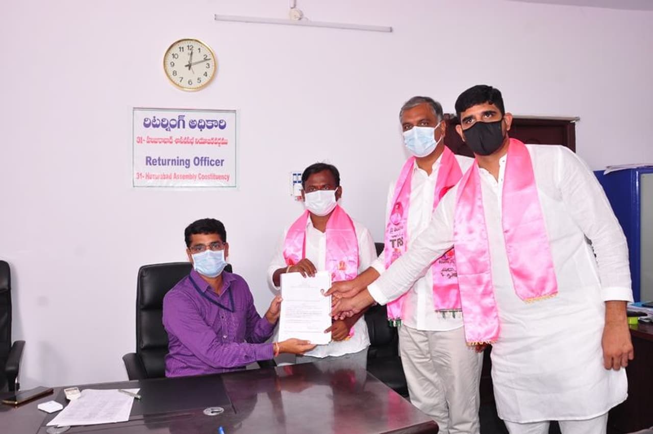 huzurabad bypoll లో నామినేషన్ గడువు ఇవాళ్టితో ముగియనుంది. ఇప్పటికే నామినేషన్ ప్రక్రయ ఆరంభంలోనే రెండు సెట్లతో నామినేషన్ దాఖలు చేసిన టీఆర్ఎస్ అభ్యర్థి గెల్లు శ్రీనివాస్ యాదవ్ మరో రెండు సెట్ల నామినేషన్ పత్రాలను రిటర్నింగ్ అధికారికి అందజేసారు. ఈ నామినేషన్ కార్యక్రమంలో మంత్రి harish rao పాల్గొన్నారు.
