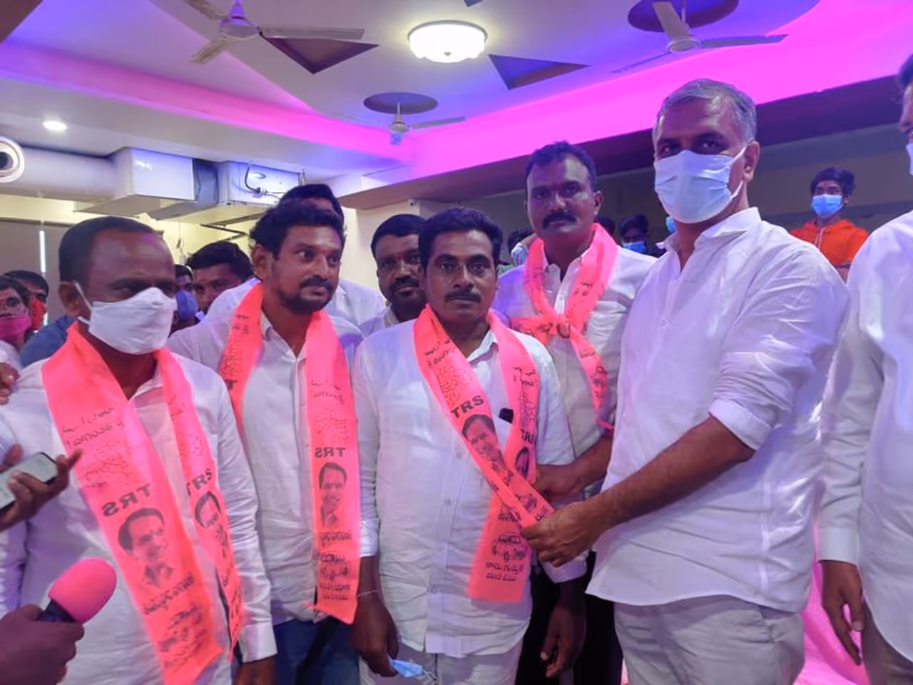 హుజురాబాద్ నియోజకవర్గం ఇళ్లందకుంట మండలంలోని చిన్నకోమటపల్లి సర్పంచ్ సరోజ -నాగన్న, భోగంపాడ్ సర్పంచ్ తిరుపతి రెడ్డి లు టీఆర్ఎస్ లో చేరారు. వీరితో పాటే ఈ గ్రామాల ఉపసర్పంచ్ లు, వార్డు మెంబర్లు కూడా బిజెపిని వీడి టీఆర్ఎస్ తీర్థం పుచ్చుకున్నారు. మంత్రి హరీష్ వీరికి గులాబీ కండువా కప్పి పార్టీలో చేర్చుకున్నారు.